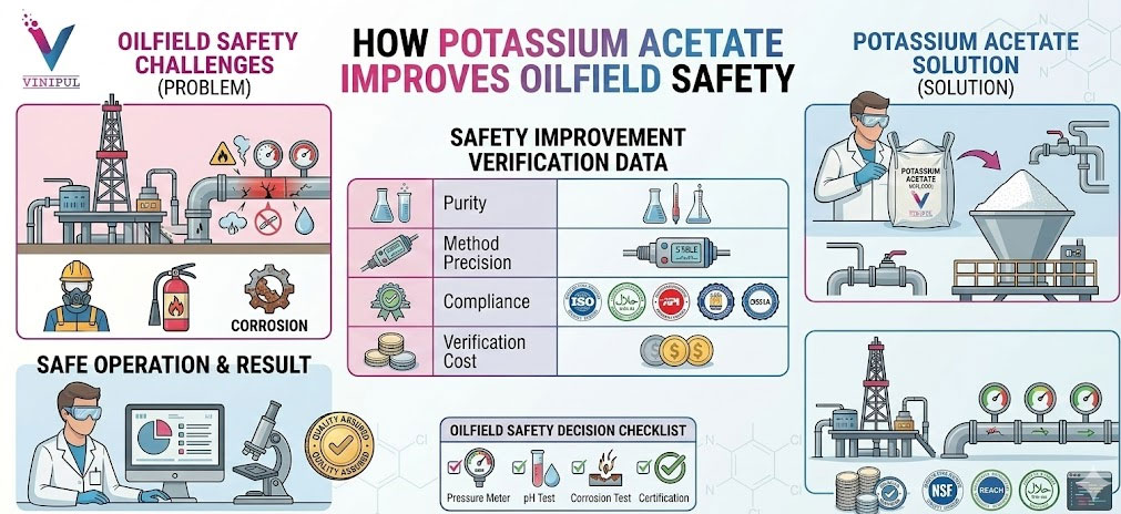 Oilfield operators who adopt potassium acetate do so because it reduces multiple safety risks at once: corrosion risk, environmental exposure, handling hazards, and long-term well integrity issues. This guide explains how potassium acetate improves oilfield safety in practical, field-relevant terms—not marketing language, not lab theory.